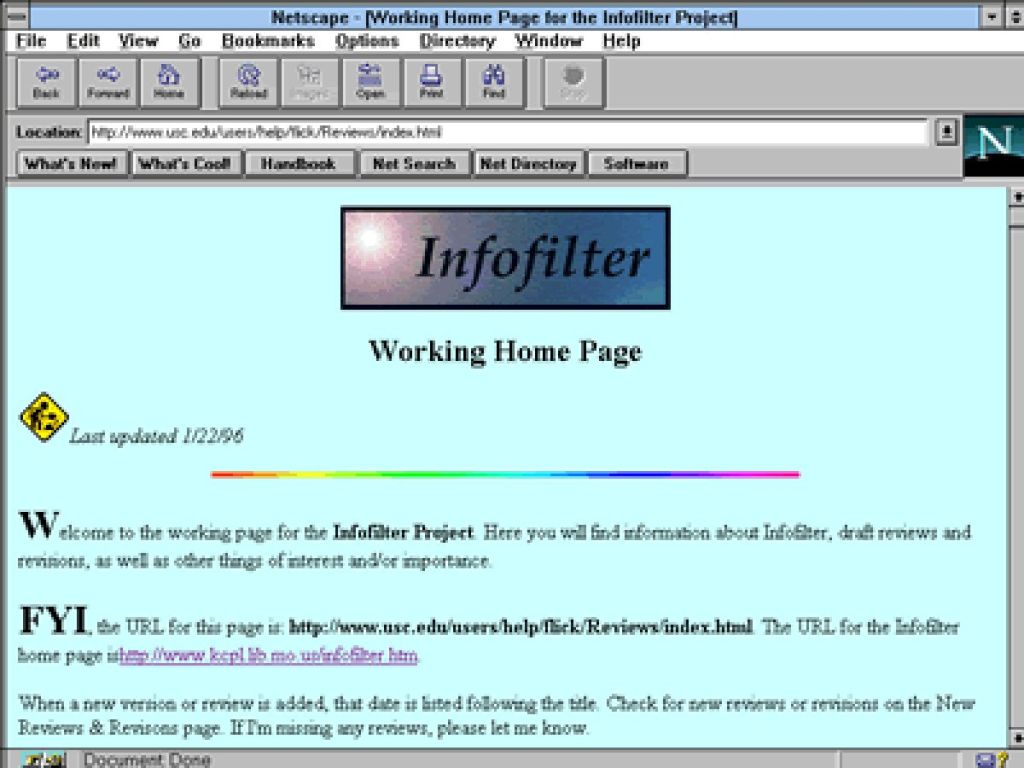 Comentamos aquí dos servicios interesantes. En un caso, es Point, una empresa hace poco adquirida por Lycos, quien elabora un nuevo tipo de índice. El otro ejemplo, Infofilter, tiene que ver con los trabajos que realiza un equipo de bibliotecarios.