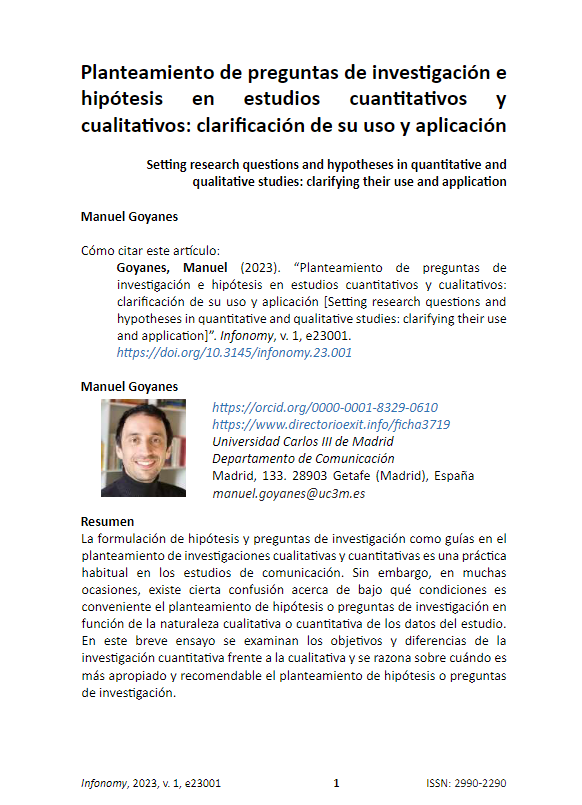 Infonomy es una revista académica diamante dedicada a explorar la intersección de la información, la comunicación, la tecnología y la sociedad. Simultáneamente a la sección monográfica anunciada, publicamos investigaciones sobre cultura digital, estudios de medios, teoría de la comunicación, documentación, bibliotecas, etc.
