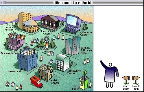 Siguiendo puntualmente sus planes, de los que informamos en IWE-22, p. 11, eWorld, el host online de Apple Computer, ha empezado a funcionar, compitiendo con CompuServe, America Online y los demás hosts dirigidos al mercado de consumo.