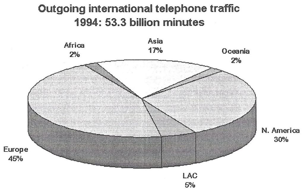 Pero este crecimiento parte de una reducida base. Europa y los EUA siguen acaparando el 75% del tráfico internacional, y entre África, Latinoamérica y el Caribe sólo circula el 7% del tráfico.