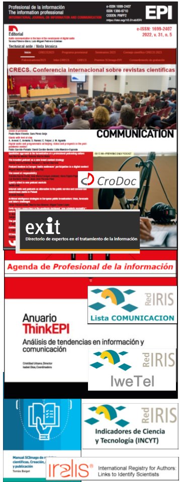 EXIT sigue la línea de la revista Profesional de la información que, por la misma razón, publica los artículos con las fotos de los autores (por cierto, algo que al principio fue criticado como “frívolo” en ciertos sectores conservadores de la Academia, pero que ha resultado muy eficaz para cohesionar a la profesión).