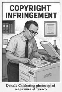 La cosa fue así: Una editorial acusó a Texaco de “no hacer el uso debido de las revistas”. A uno de los técnicos de la empresa, Donald H. Chickering (seleccionado como testigo) le habían sido encontradas 8 fotocopias de artículos de diversas revistas científicas y técnicas. Chickering se defendió diciendo