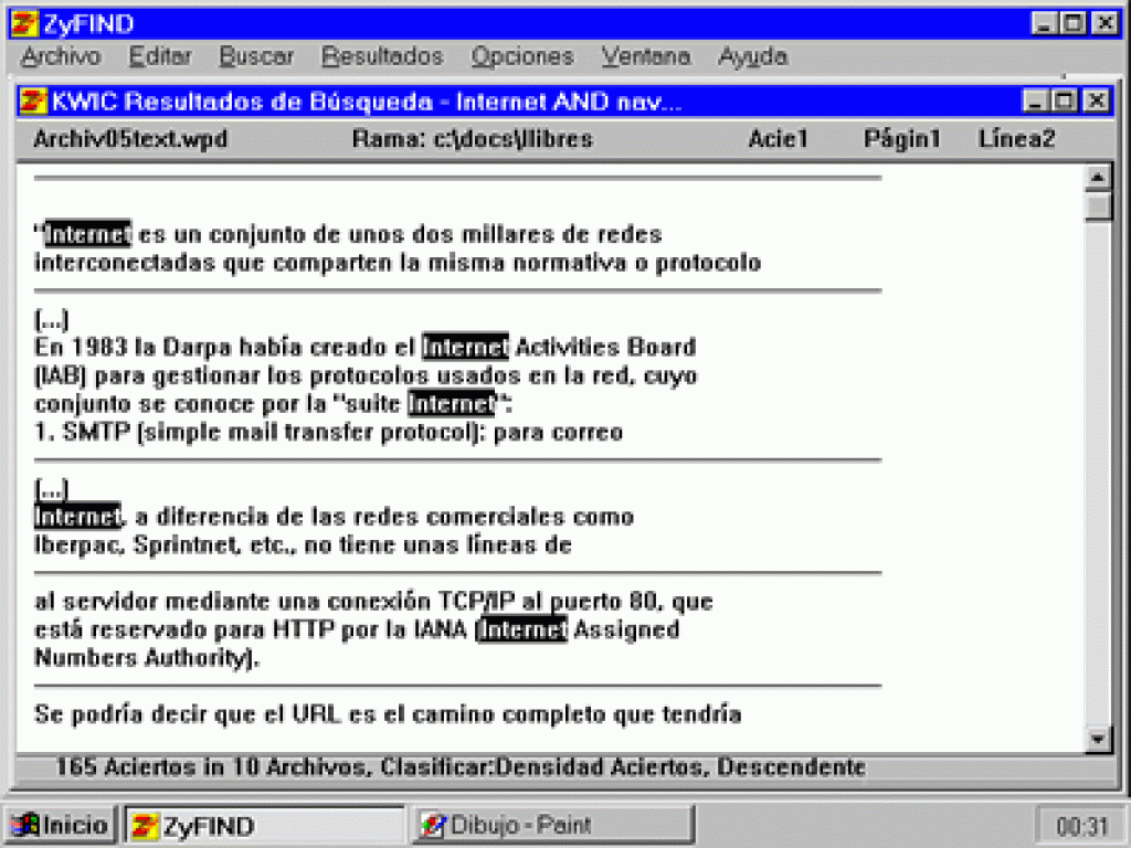 Una vez creados los índices, es posible localizar documentos con ZyIndex indicando simplemente una palabra o una frase de búsqueda y, como resultado, el programa entrega una lista de todos los documentos que contienen esa palabra.
